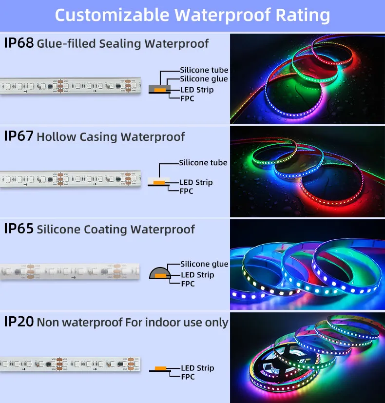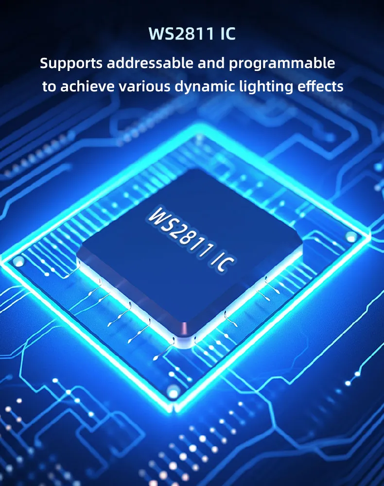 WS2811 Smart IC – Pixel-Level Lighting Control: Built-in WS2811 IC allows addressable LEDs for smooth color transitions, precise effects, and dynamic animations. Long lifespan of up to 50,000 hours durability.